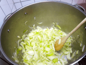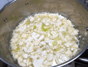 When the onions are tender, add the chopped cauliflower. Stir, then add water until cauliflower is just covered.