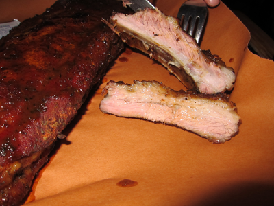 Oh, Heritage Foods and Pat LaFrieda — what wonderful meats they produce! What we love about Fort Reno is the high quality of the meats they serve. The pork ribs are AMAZING — juicy, delicious, flavorful, with a nice amount of fat (but not too much). Although some bbq afficionados/critics feel there are more “authentic” bbq to be eaten in NY (and Dinosaur BBQ is opening soon on the same street as Fort Reno), what sets Fort Reno apart for us is that the meats are organic and grass-fed.