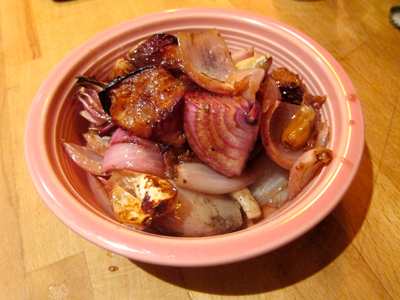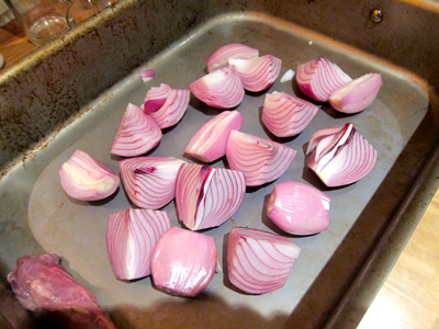 - 3 red onions, cut into quaters