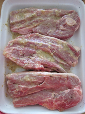 Lamb shoulder blades entered into our dinner repertoire because they are surprisingly delicious, and, compared to other cuts of lamb, less expensive, thereby making them a good “everyday” option (i.e. not “special occasion”).  When we first bought shoulder blades to cook at home, we worried that the meat might be chewy (they kind of look it at the butcher’s); but after marinating overnight and cooking them simply, the meat on the blades are tender and very flavorful.  I marinate the blades in my go-to mix of lemon juice, garlic, and olive oil overnight.  Although some pieces might be a little sinewy or have an intricate maze of bones — requiring patience for the eater — lamb shoulder blades are a good option if you want a good amount of lamb for less.   I’m sure slow-cooking will be a good method for them.  So far I have seen 2 types of grass-fed lamb shoulder blades: New Zealand and Icelandic.  The Icelandic lamb is smaller than the New Zealand lamb.  Although lamb blades may not be to everyone’s taste, if you’re interested, it’s worth trying!