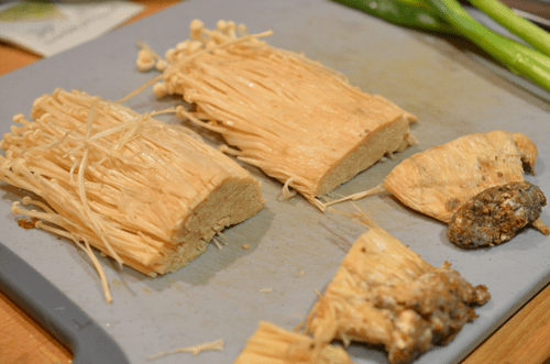 enoki spinach – cut ends off