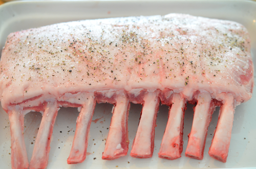 Season the rack lightly with salt and pepper on both sides.
