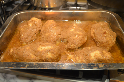 Cover tightly with cling wrap and marinate overnight. **It is important to marinate at least overnight, so that the meat will tenderize and take on the spice flavors.