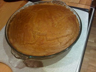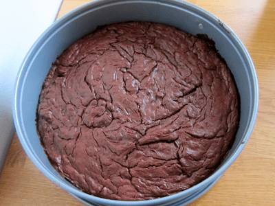Pour the batter into the baking pan.  Bake for about 25 minutes, until the cake sets.  Let the cake cool before serving.  The cake keeps well refrigerated.