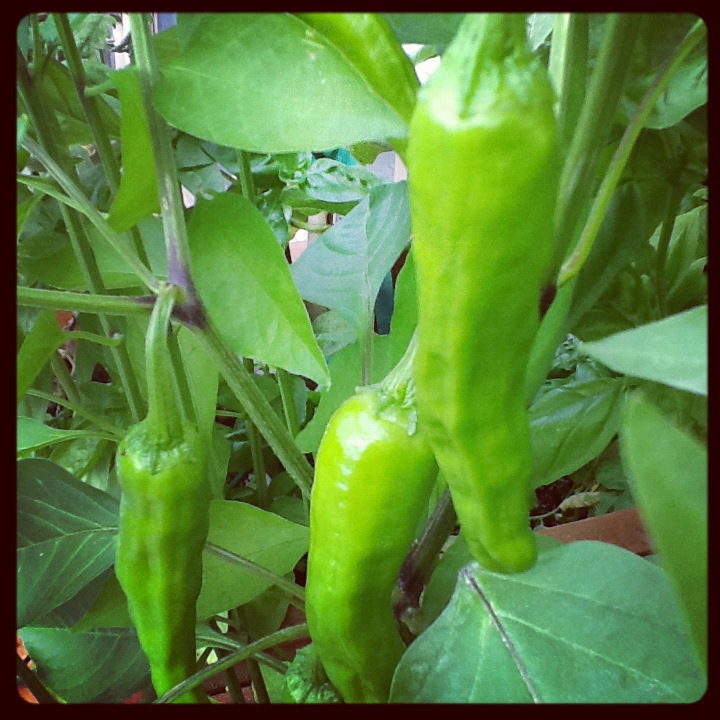 My current garden excitement are the shishito peppers — they look gorgeous, and more keep growing… I can’t wait to eat them! I planted them solely because I love grilled shishito peppers and thought it would be great if we could just grow them ourselves and not have to pay for them. We weren’t confident how well they’d do, but they seem to be doing very well. Although I suspect that their pepper growth will not keep up with my appetite, I am impressed with how well they are doing.