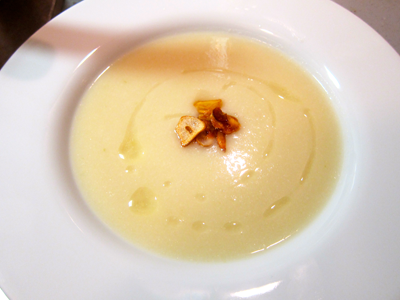 Cauliflower Soup w/Crispy Garlic Chips+White Truffle Oil