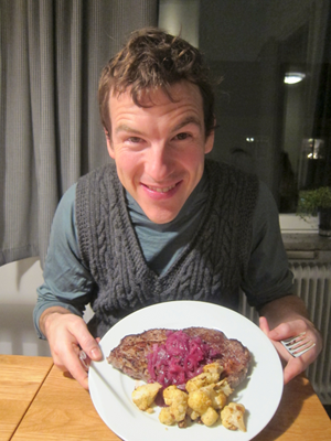 David was very excited with the entrecôte with red onions, with a side of roasted cauliflower.