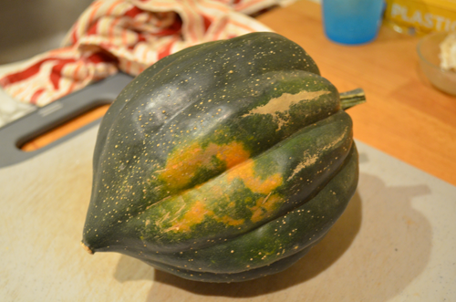 I like to get organic acorn squash, because I keep the skin on, which I think is delicious roasted.  And here’s how I roast them: